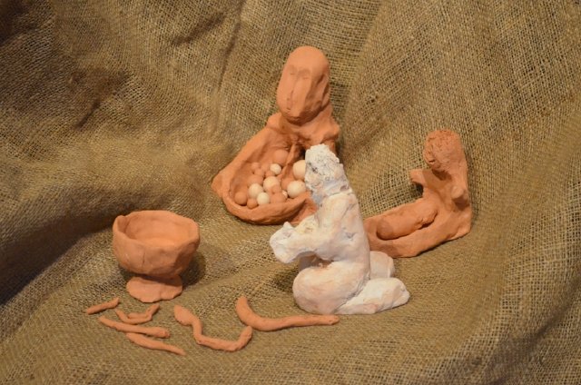 Pour fabriquer ces santons, nous étions invités à participer à un atelier terre guidé par Irène Bellier.