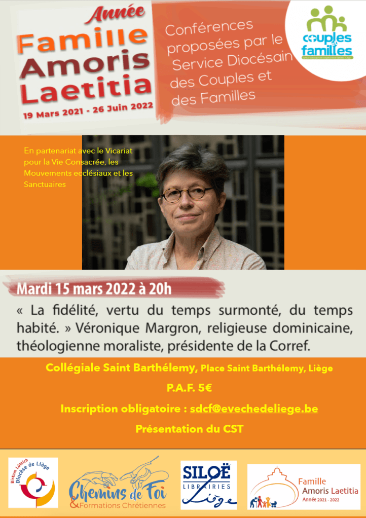 Conférence la Fidélité (15/03/22) – V. Margron Le Service Diocésain des Couples et des Familles vous propose une conférence de Véronique Margron: Les commentaires sont fermés.